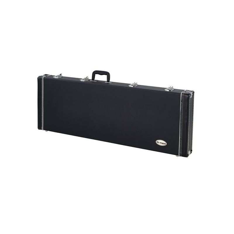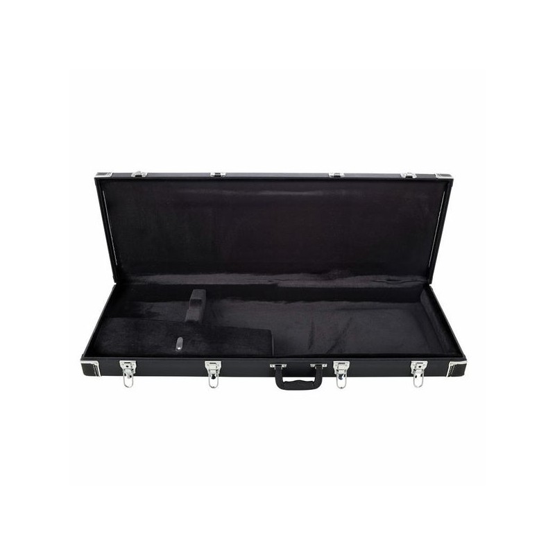 Maleta rectangular, práctica y bien fabricada. Por poco dinero esta maleta ofrece una excelente protección para muchos modelos de guitarras de formas convencionales como por ejemplo Fender, Ibanez, Double modelos Cut, etc.. El revestimiento de Tolex es difícil de estropear, en las esquinas y los cantos presenta refuerzos para una robustez y protección adicional. En el interior encontramos espacio además para cuerdas de repuesto o partituras.