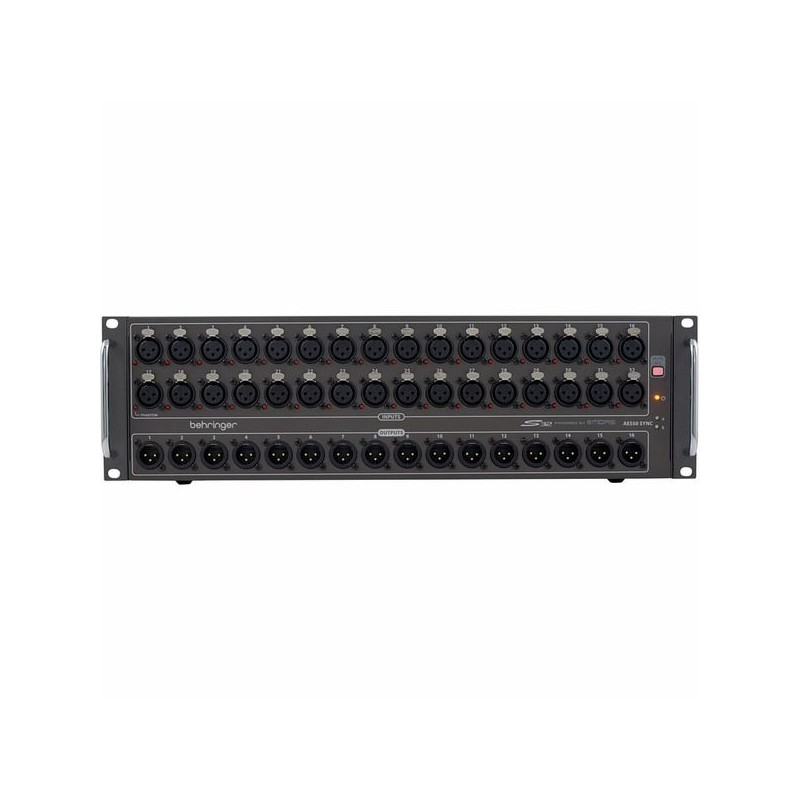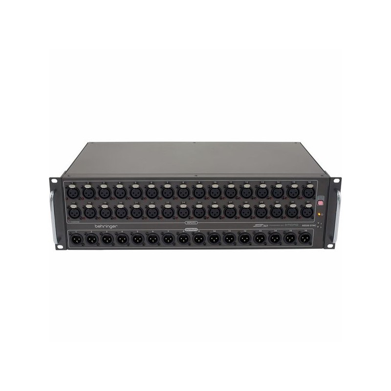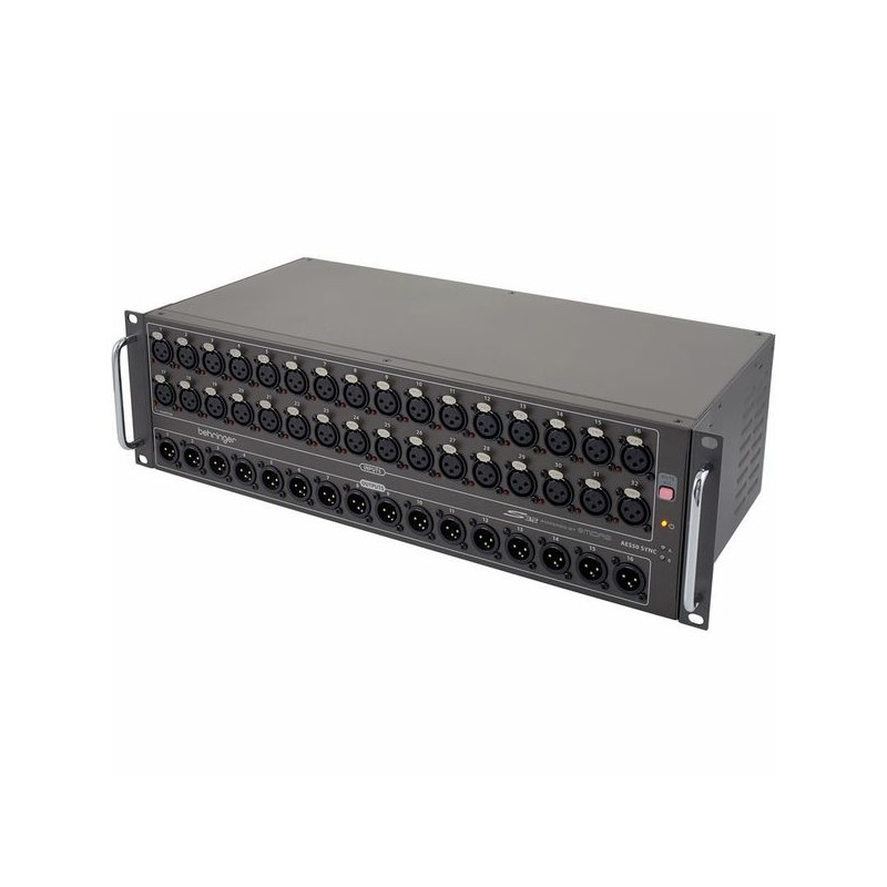 El S32 proporciona 32 preamplificadores de micrófono controlables a distancia diseñados por Midas , además de 16 retornos XLR analógicos balanceados al final del escenario, y todo lo que necesita es un solo cable Cat 5e. Si bien Klark Teknik inventó la tecnología AES50 SuperMAC que lo hizo posible, la excelente escala de producción de Behringer hace que el S32 sea muy asequible.