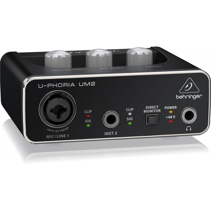 Cuando llega el momento de grabar, necesitas la mejor interfaz de audio que puedas obtener. La increíble UM2 es una interfaz USB ultracompacta de 2 x 2, 48 kHz con un preamplificador de micrófono XENYX de nivel de estudio, una combinación de entrada XLR/TRS y una entrada de instrumento adicional de ¼" (no se requiere caja DI).