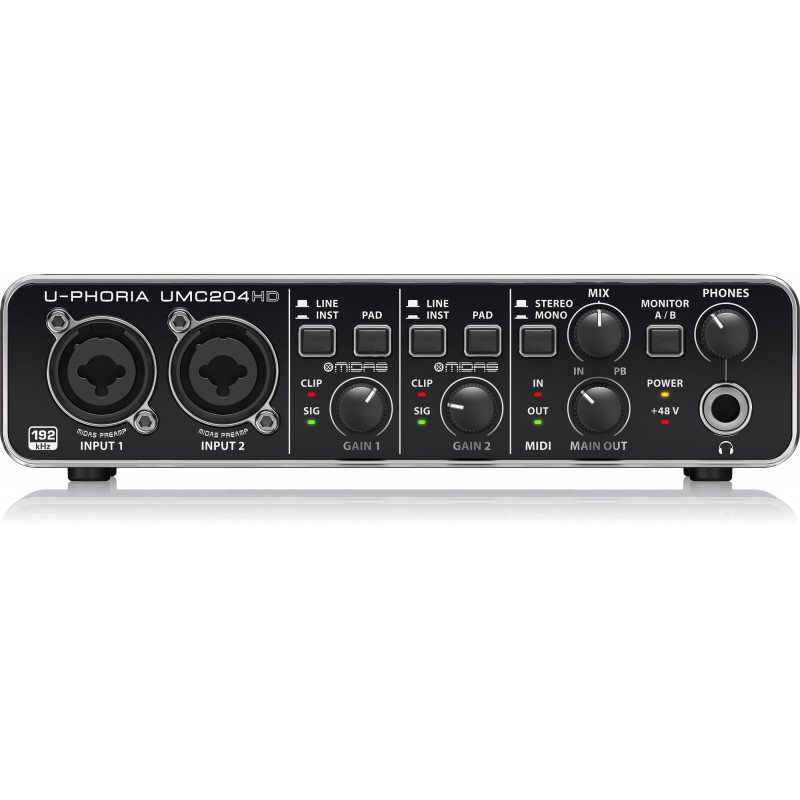 El increíble U-PHORIA UMC204HD cierra la brecha entre tu creatividad y tus fans. Esta increíble interfaz estudio USB 2.0 te permitirá grabar tu próxima obra maestra en minutos con toda la conectividad necesaria para tus micrófonos, guitarras, teclados e incluso dispositivos MIDI.