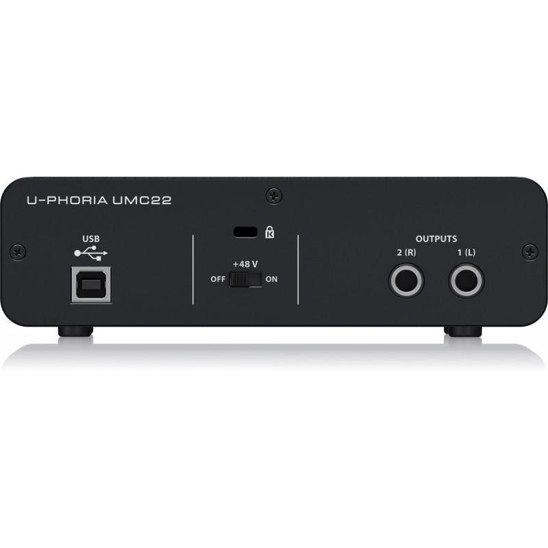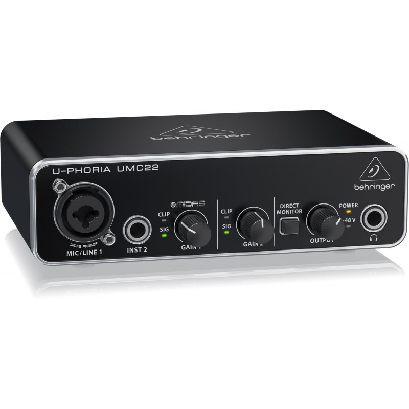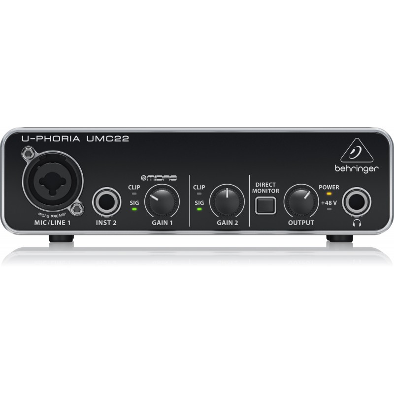 La UMC22 es una interfaz de audio USB ultracompacta de 2 x 2, 48 kHz con un preamplificador de micrófono diseñado por Midas de nivel profesional, una combinación de entrada XLR/TRS para la entrada de voz o de línea y una entrada de instrumento de ¼" adicional (no se requiere caja DI). La UMC22 es la mejor y más portátil interfaz de grabación de su clase.