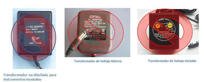 Lamentablemente por desconocimiento, muchos músicos usan fuentes de poder no especializadas en instrumentos, las cuales además de entregar demasiado ruido, tienen un problema mucho más grande: entregan un voltaje bastante superior al indicado.