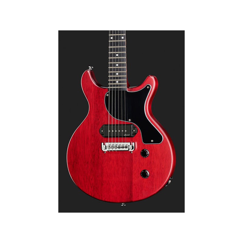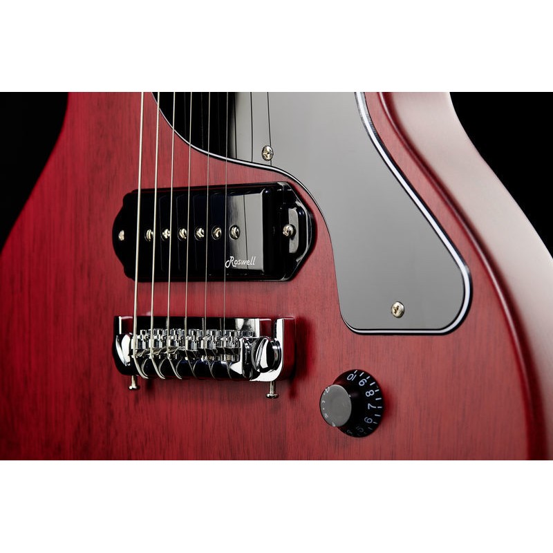 El cuerpo de caoba y el mástil más grueso del DC Junior FAT se combinan con una humbucker estilo P90 apilada y dividida en forma de "oreja de perro" en la posición del puente para brindarte un gran gruñido que se suaviza muy bien a medida que bajas el volumen. El acabado Faded Cherry satinado de poros abiertos saca lo mejor de la fina veta de la madera de caoba.