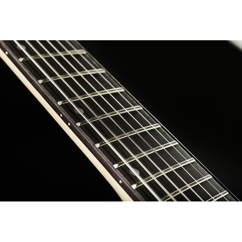 La disposición especial de los trastes de esta guitarra con cuerpo de álamo significa que las cuerdas graves son más largas (686 mm o 27 pulgadas) que las cuerdas altas (648 mm o 25,5 pulgadas). Esto le brinda el máximo impacto y definición en las cuerdas bajas, pero una sensación suave y receptiva en las cuerdas altas.