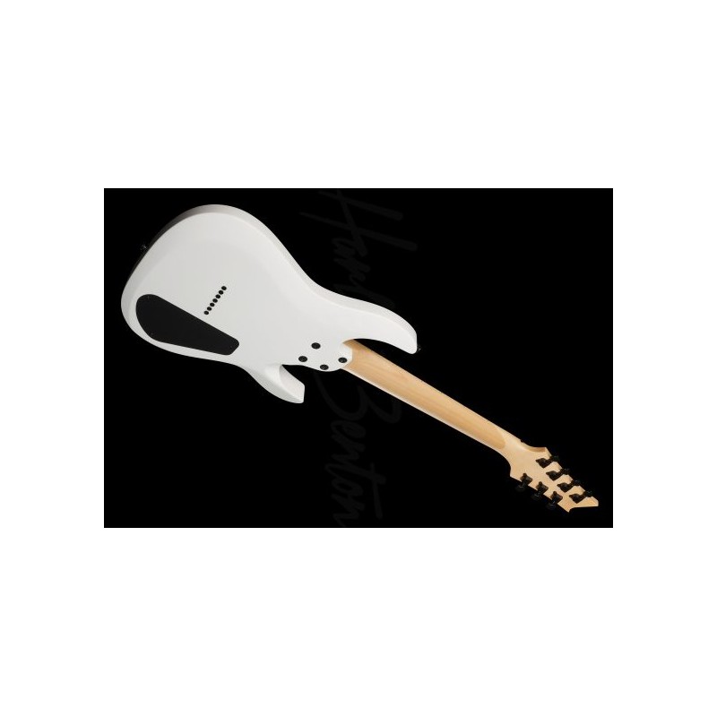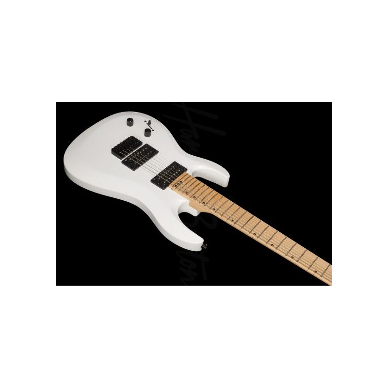 Qué contradicción entre esta delicada belleza y su poder destructivo. Un lujoso cuerpo de álamo se combina con un mástil de arce atornillado y un diapasón de arce de 24 trastes que es cómodo de tocar hasta el extremo superior. Tiene dos humbuckers de alta ganancia ajustados usando los controles de Volumen y Tono y seleccionados con un interruptor de 3 vías. El puente rígido se puede ajustar de muchas maneras diferentes y se combina aquí con una tuerca de ABS y clavijas sólidas y cerradas para garantizar una estabilidad de afinación perfecta, incluso cuando estás triturando como si no hubiera un mañana