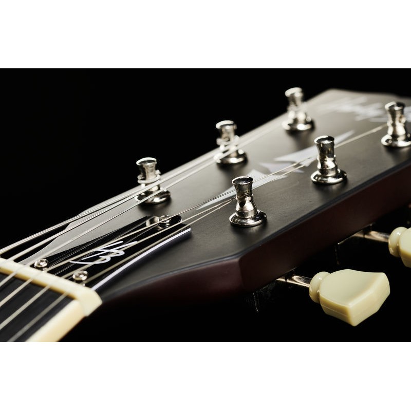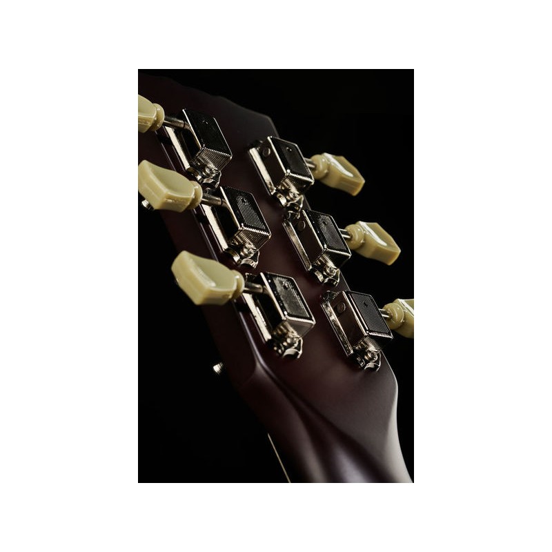 Combinado con el interruptor de tres vías, es una configuración versátil para crear su propio sonido característico. Al igual que el modelo legendario que la inspiró, esta guitarra tiene un mástil de arce empotrado, mientras que el cuerpo de tilo luce una tapa arqueada. Hablando del cuello: en lugar de simples puntos, este cuello, que tiene una longitud de escala de 628 mm, tiene incrustaciones de corona grandes para ayudarlo a orientarse. Eso no solo es práctico, sino también visualmente auténtico. El hardware cromado, desde los afinadores hasta el botón de la correa, es otra expresión más de los altos estándares en el núcleo de un instrumento que diseñamos no solo para principiantes sino también para jugadores más experimentados.